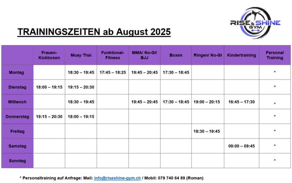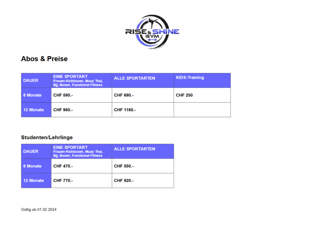 Stundenplan/Preise Personaltraining auf AnfrageIn jedem Abo ist das freie Training im Kraft-Fitnessbereich während den Öffnungszeiten inkl. Facebook Instagram Youtube Whatsapp